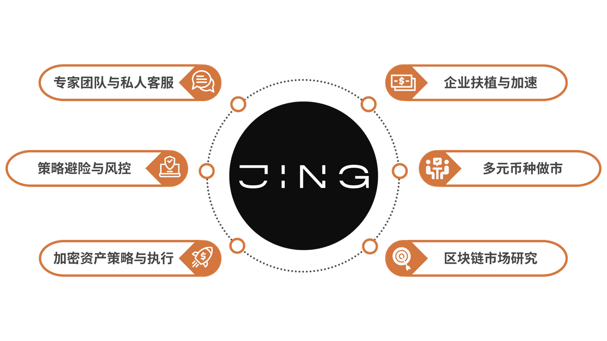 JING Coin 专注于服务企业与机构级客户,累积丰富加密货币领域实力与区块链金融专家团队,为我们的用户提供点私人 E2E 资产管理服务方案。